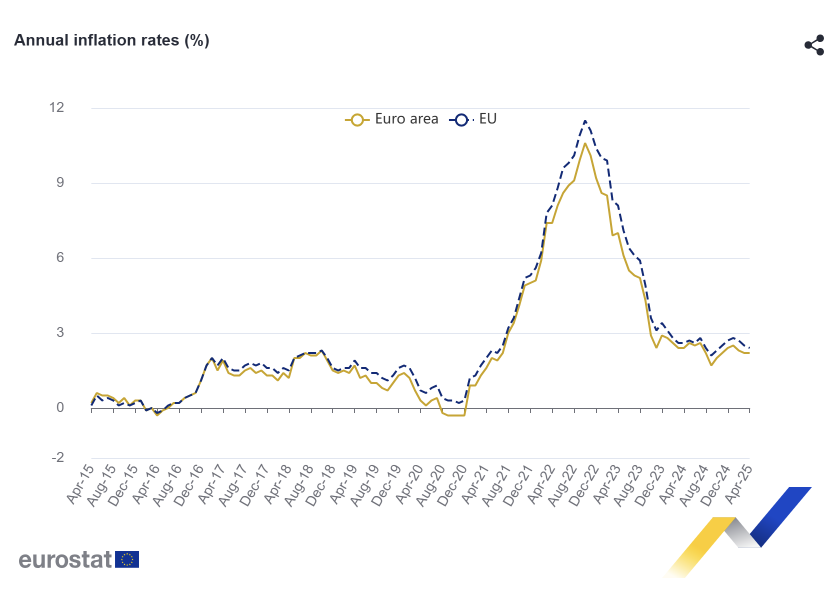 财联社5月19日电,欧元区4月CPI同比增长2.2%,预期2.2%;4月CPI环比增长0.6%,预期0.6%。法国(0.9%)、塞浦路斯(1.4%)和丹麦(1.5%)的年增长率最低。罗马尼亚(4.9%)、爱沙尼亚(4.4%)和匈牙利(4.2%)的年增长率最高。与2025年3月相比,13个会员国的年度通胀率下降,3个会员国保持稳定,11个会员国的年通胀率上升。在2025年4月,对欧元区年度通胀率贡献最大的是服务业(+1.80个百分点,pp),其次是食品、酒精和烟草(+0.57pp)、非能源工业产品(+0.15pp)和能源(-0.35pp)。