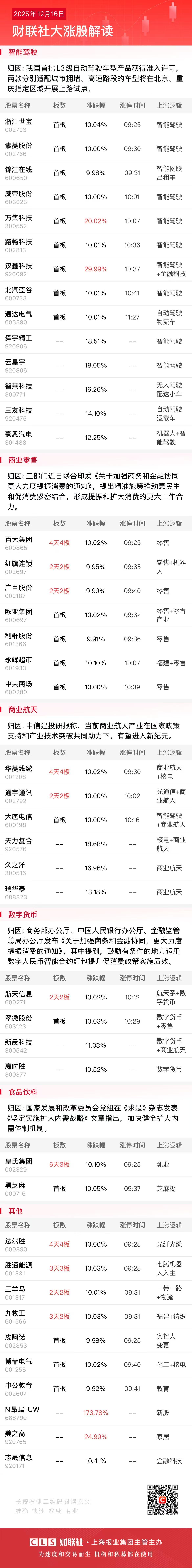 12月16日午间涨停分析