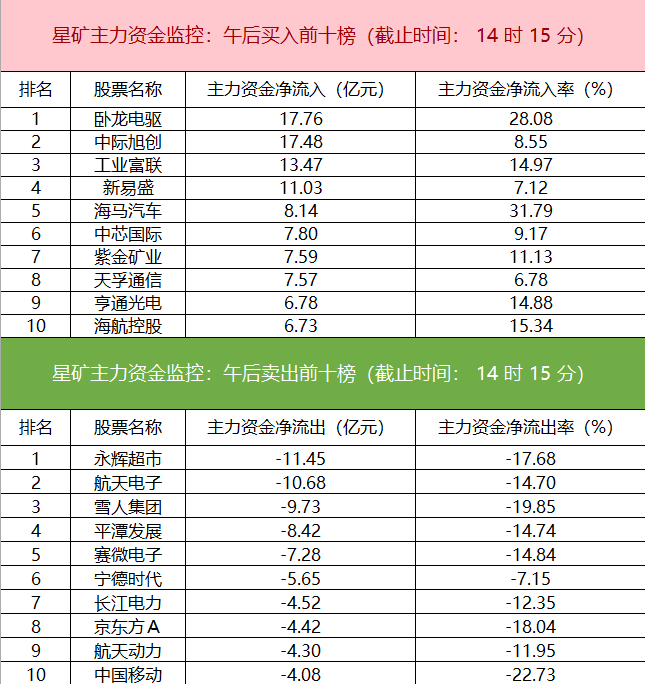 财联社12月22日电,财联社星矿数据显示,今日主力资金净流入通信、电子、有色金属等板块,净流出文化传媒、医药、商贸零售等板块,其中通信板块净流入超72亿元。个股方面,卧龙电驱资金净买入17.76亿元位居首位,中际旭创、工业富联、新易盛主力资金净流入居前;永辉超市遭净卖出超11亿元位居首位,航天电子、雪人集团、平潭发展主力资金净流出额居前。