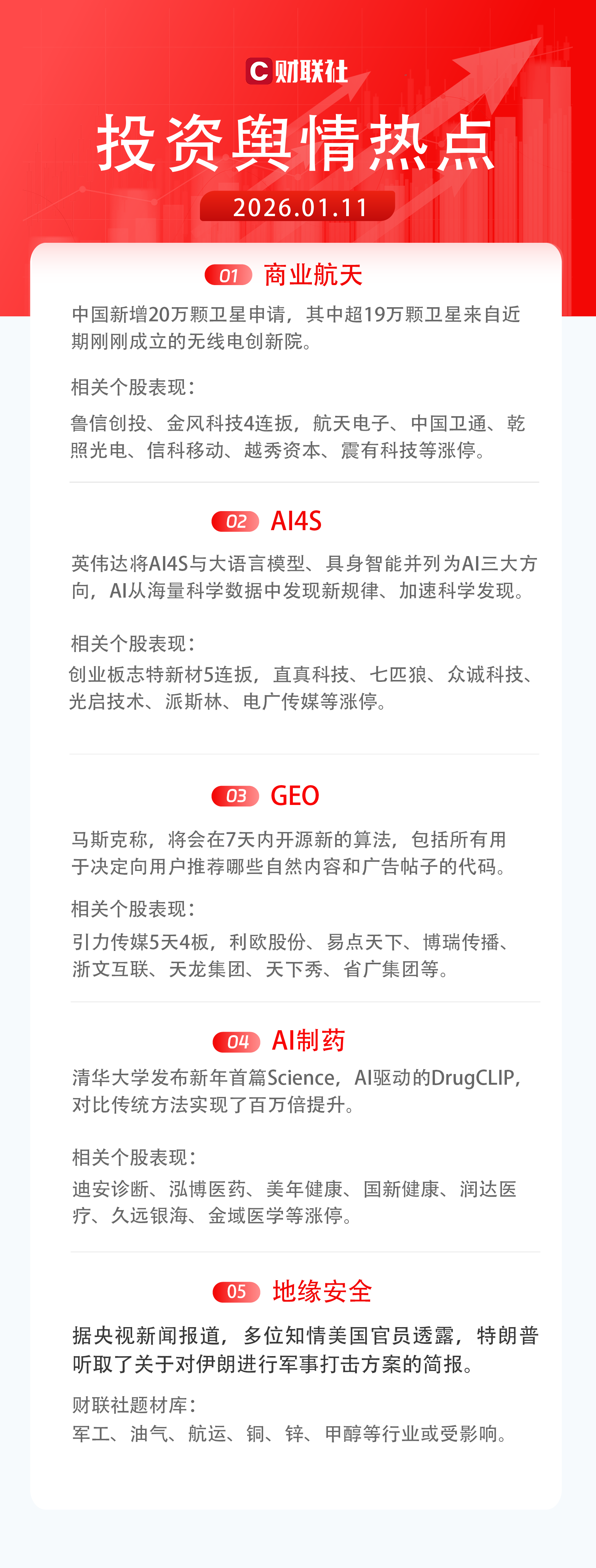 1)商业航天:中国新增20万颗卫星申请,其中超19万颗卫星来自近期刚刚成立的无线电创新院。