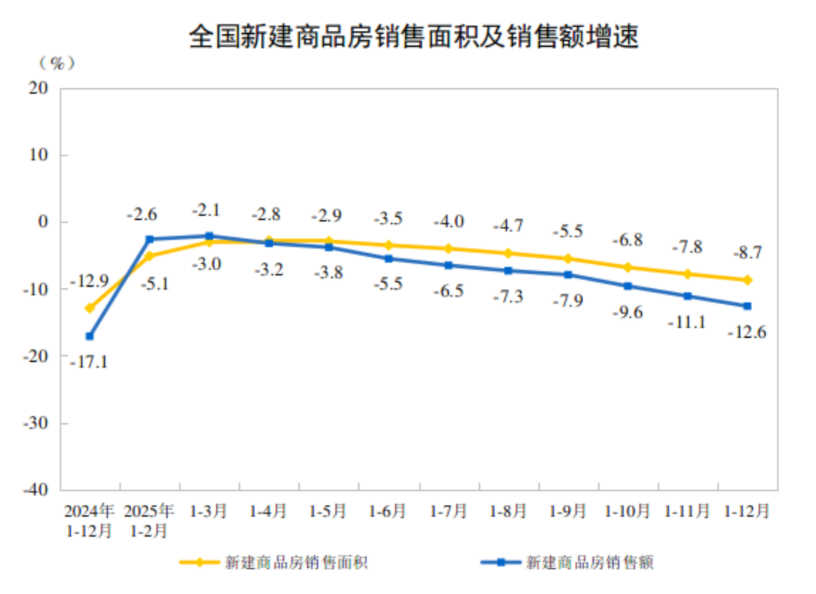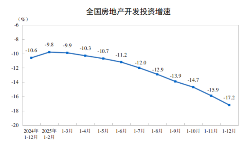 国家统计局:2025年全国房地产开发投资82788亿元 比上年下降17.2%