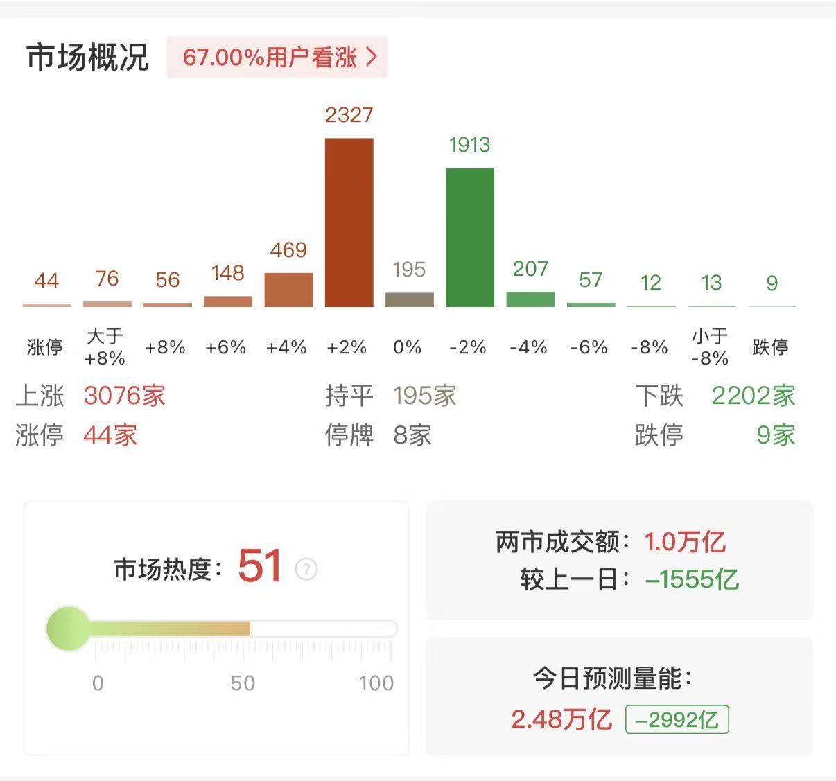 沪深两市成交额突破1万亿 较上一日此时缩量超1500亿