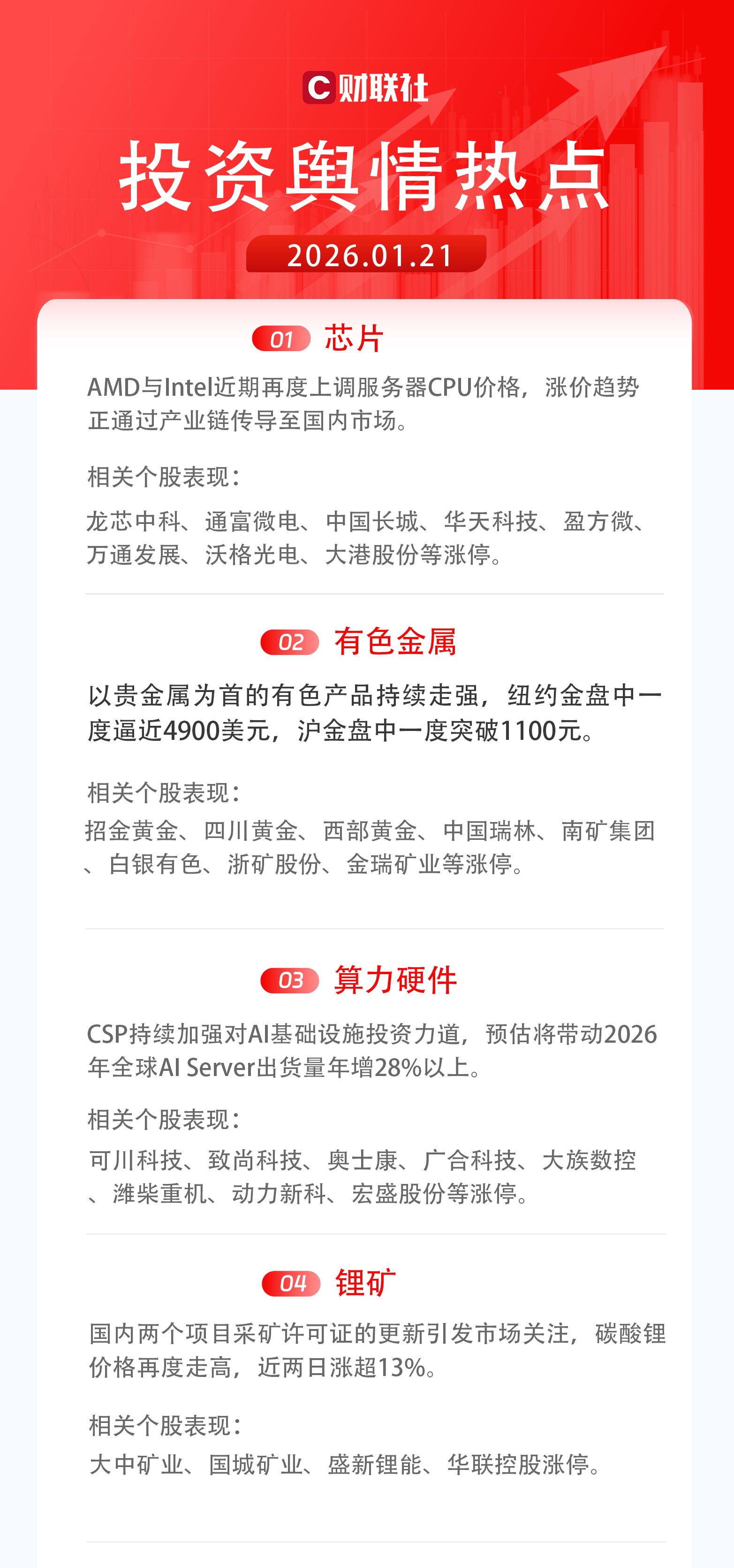 1)芯片:AMD与Intel近期再度上调服务器CPU价格,涨价趋势正通过产业链传导至国内市场。