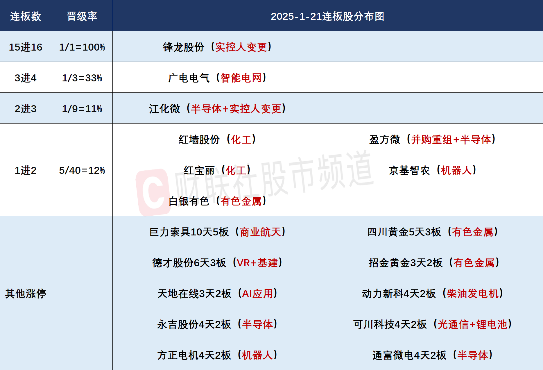 今日共79股涨停,连板股总数8只,其中三连板及以上个股3只,上一交易日共13只连板股,连板股晋级率23.07%(不含ST股、退市股)。个股方面,全市场超3000只个股上涨。市场波动趋于平缓,一方面跌停个股数量锐减,两市仅4只个股跌停,为近7个交易日以来最少的一天。另一方面,连板股也表现平平,除去一字涨停的锋龙股份、江化微外,仅广电电气一股突破2连板。板块方面,芯片产业链全天保持强势,江化微3连板,盈方微2连板,通富微电、永吉股份4天2板,算力芯片方向的大流量标的表现尤为活跃,中国长城、龙芯中科涨停,海光信息、澜起科技涨超10%;有色金属板块延续强势,四川黄金5天3板,白银有色2连板,招金黄金3天2板,浙矿股份20CM涨停,消息面上,今日盘中,现货黄金历史首次升破4876美元/盎司关口,向上冲击4900美元关口。