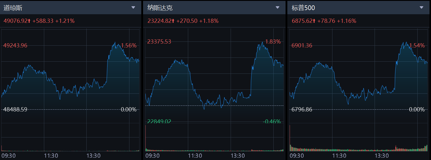美股三大指数均收涨超1% 存储概念股走强