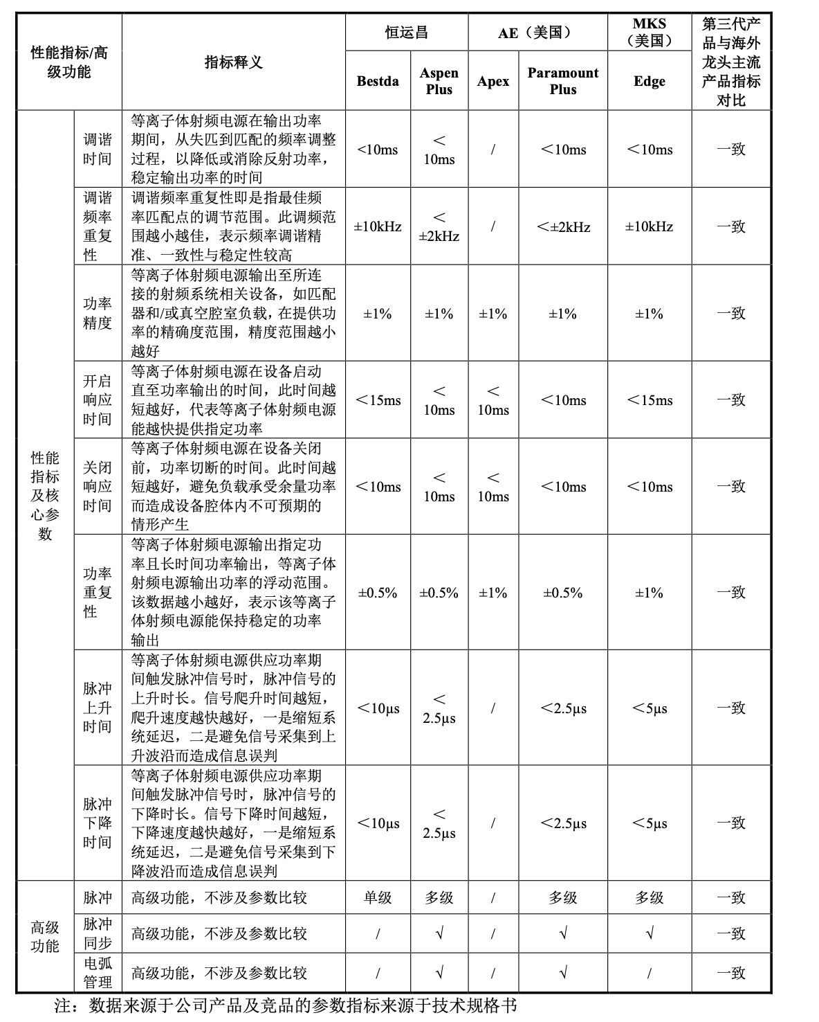 恒运昌是我国产半导体射频电源系统龙头企业,其先后推出CSL、Bestda、Aspen三代产品系列,成功打破了美系两大巨头MKS和AE长达数十年在国内的垄断格局。