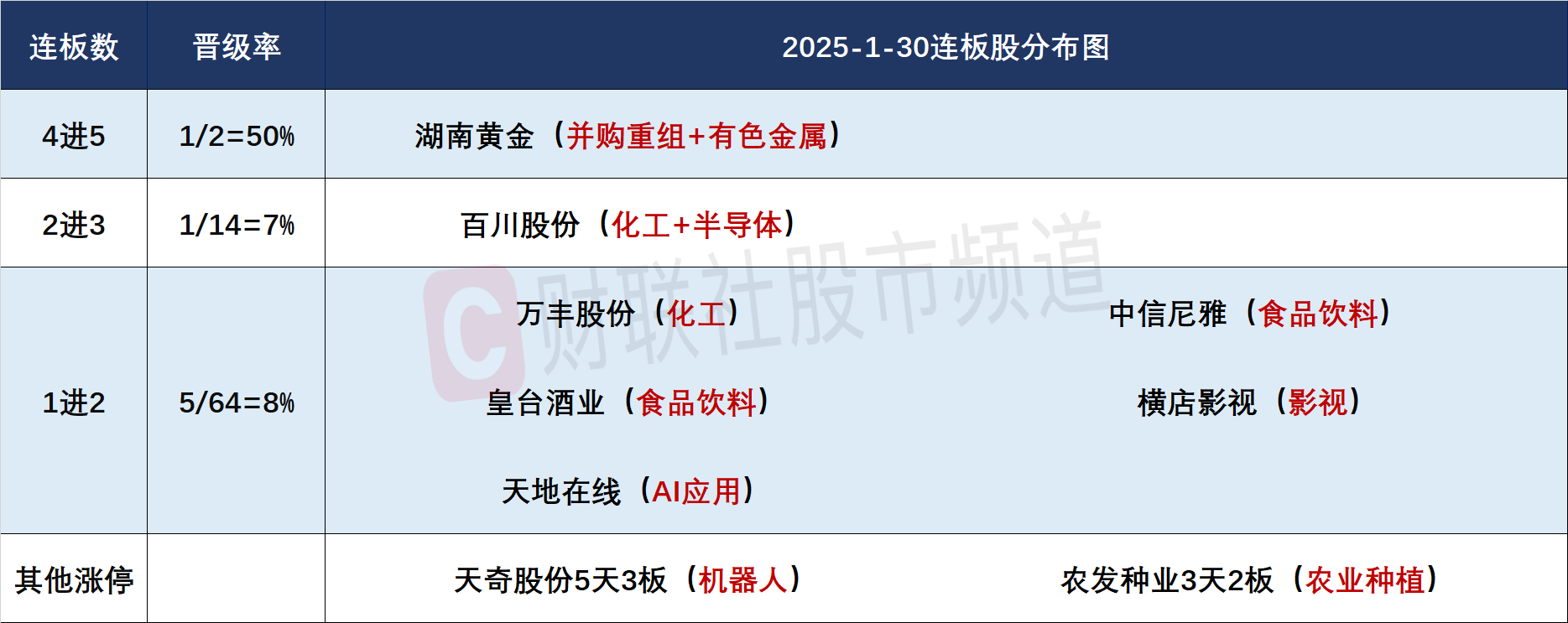 1月30日连板股分析:连板股晋级率仅一成 连板高度降至5板