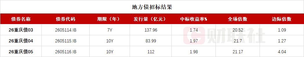 重庆市政府三期地方债已招标结束 投标倍数均在20倍之上