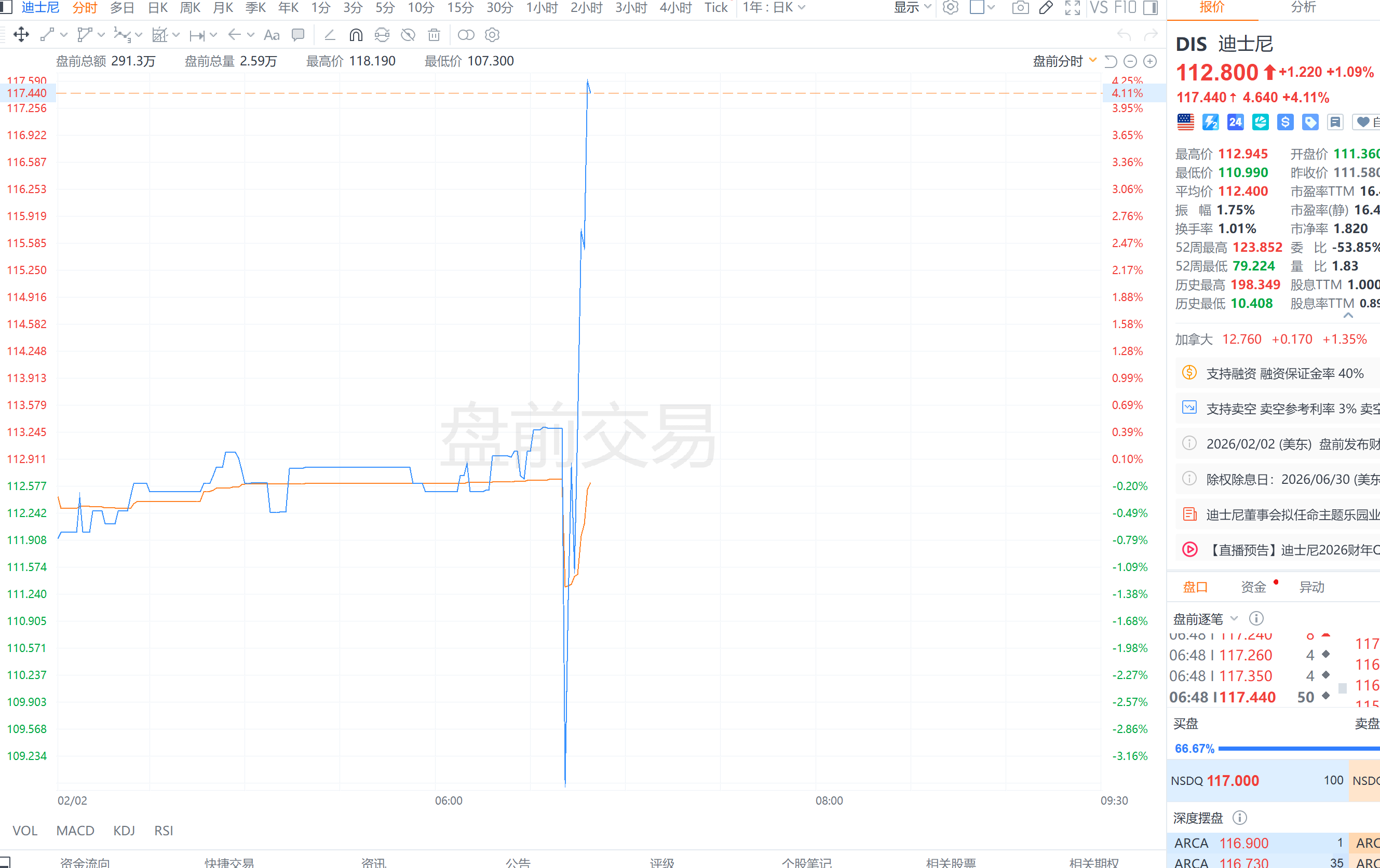 财联社2月2日电,迪士尼股票在盘前交易中上涨4%,此前公司第一季度收入超出预期。