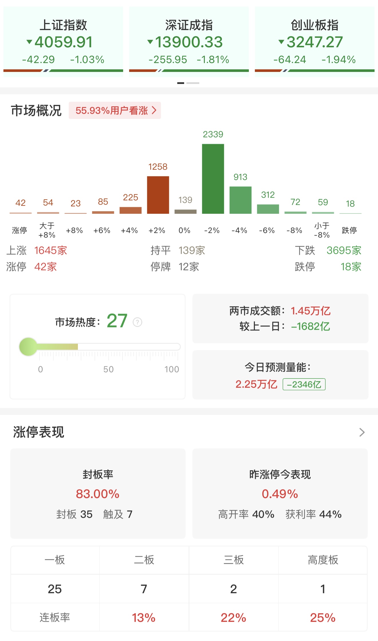 财联社2月5日电,市场早盘震荡调整,三大指数均跌超1%。沪深两市半日成交额1.45万亿,较上个交易日缩量1682亿。盘面上热点较为杂乱,全市场超3600只个股下跌。从板块来看,大消费板块大涨,食品饮料、零售、影视院线方向涨幅居前,横店影视6天5板,杭州解百2连板,安记食品、海欣食品、金逸影视涨停。阿里概念局部异动,新华都直线涨停。算力租赁概念回暖,二六三封涨停。银行板块逆势拉升,厦门银行涨超6%。下跌方面,贵金属概念集体大跌,湖南白银跌停。算力硬件概念持续下挫,德科立、太辰光跌超10%。截至收盘,沪指跌1.03%,深成指跌1.81%,创业板指跌1.94%。