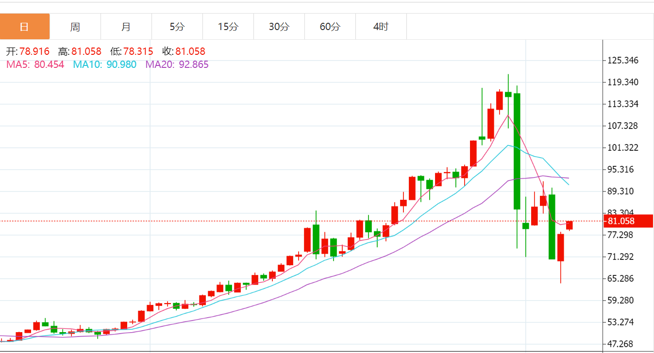 财联社2月9日电,现货白银向上触及81美元/盎司,日内上涨4.55%。