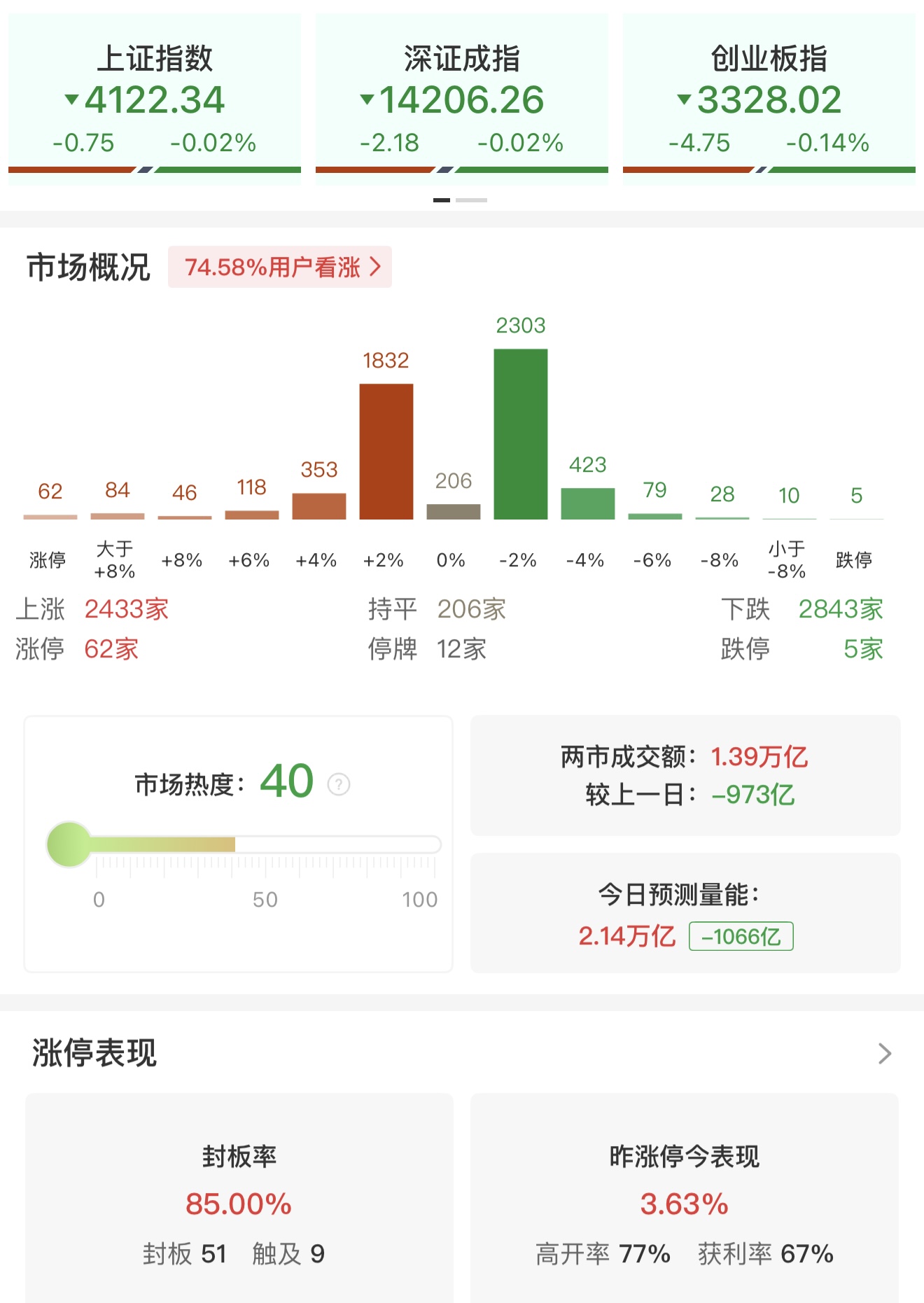 财联社2月10日电,市场早盘窄幅震荡,三大指数小幅下跌,北证50指数盘中跌超1%。沪深两市半日成交额1.39万亿,较上个交易日缩量973亿。盘面上热点快速轮动,全市场超2800只个股下跌。从板块来看,传媒板块持续走高,读客文化、捷成股份、荣信文化、横店影视、上海电影、博纳影业、中国电影、光线传媒等多股涨停。分散染料概念反复活跃,海翔药业3连板,华尔泰触及涨停。PCB概念震荡拉升,南亚新材、宏和科技双双创历史新高。下跌方面,商业航天概念震荡走弱,飞沃科技、顺灏股份、西部材料大跌。截至收盘,沪指跌0.02%,深成指跌0.02%,创业板指跌0.14%。