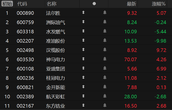 财联社3月5日电,市场焦点股法尔胜(8天6板)高开5.07%,油气板块洲际油气(7天5板)低开0.24%、水发燃气(4板)低开5.44%、准油股份(3板)低开9.98%,电网设备板块汉缆股份(9天5板)高开9.72%、神马电力(5天3板)高开4.26%,农业股亚盛集团(4板)高开6.99%,电力股桂冠电力(3天2板)高开2.12%、金开新能(4天2板)高开0.13%,军工股航天彩虹(3天2板)低开2.68%,有色金属板块东方锆业(4天2板)高开2.68%。