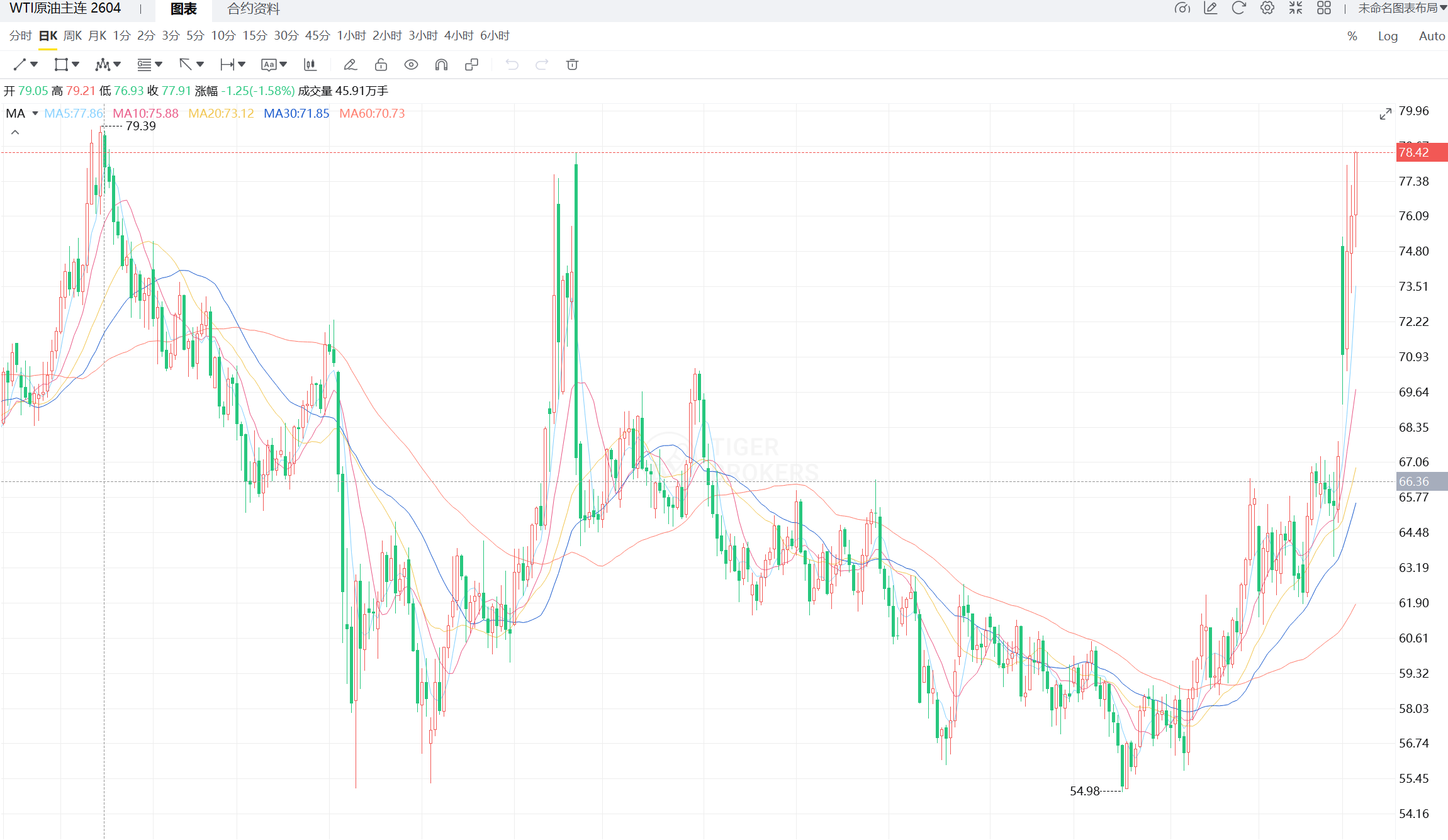 财联社3月5日电,WTI原油期货涨幅扩大至5%,刷新去年1月以来高位,报78.441美元/桶。