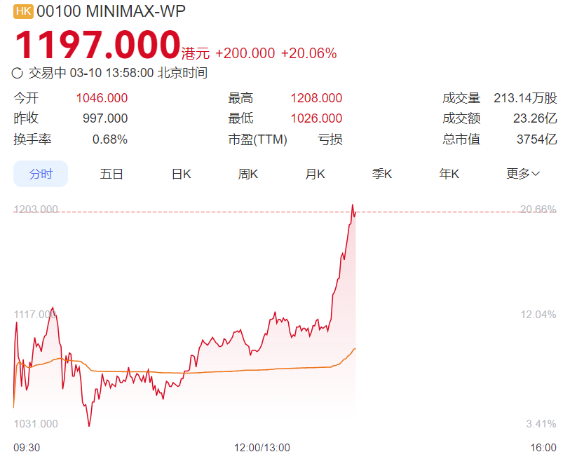“龙虾”概念港股涨幅扩大 MINIMAX涨20%