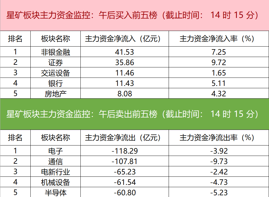 财联社3月17日电,财联社星矿数据显示,今日主力资金净流入非银金融、证券、交运设备等板块,净流出电子、通信、电新行业等板块,其中电子板块净流出超118亿元。个股方面,协鑫集成资金净买入20.02亿元位居首位,山子高科、东方财富、华电新能主力资金净流入居前;天孚通信遭净卖出超18亿元位居首位,华工科技、兆易创新、阳光电源主力资金净流出额居前。