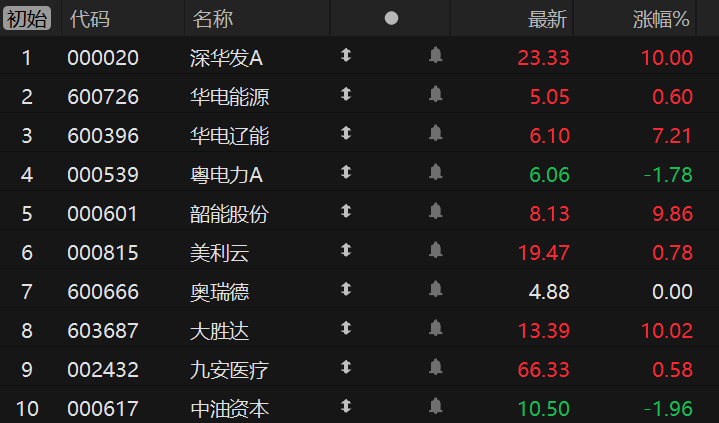财联社3月20日电,市场焦点股深华发A(4板)竞价涨停,电力板块华电能源(8天5板)高开0.60%、华电辽能(4板)高开7.21%,算电协同概念股粤电力A(2板)低开1.78%、韶能股份(2板)高开9.86%,算力租赁板块美利云(2板)高开0.78%、奥瑞德(2板)平开,并购重组的大胜达(2板)竞价涨停,参股AI应用企业的九安医疗(2板)高开0.58%,跨境支付概念股中油资本(4天2板)低开1.96%。