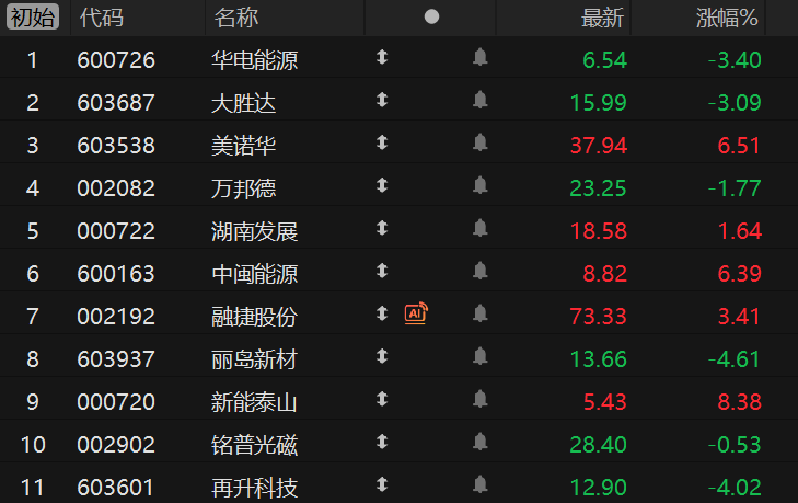 财联社3月27日电,市场焦点股华电能源(13天8板)低开3.40%,并购重组的大胜达(7天5板)低开3.09%,医药板块美诺华(10天5板)高开6.51%、万邦德(3天2板)低开1.77%,电力板块湖南发展(3板)高开1.64%、中闽能源(2板)高开6.39%,锂电池板块融捷股份(3板)高开3.41%、丽岛新材(3天2板)低开4.61%,电网设备板块新能泰山(3板)高开8.38%,光通信概念股铭普光磁(6天3板)低开0.53%,商业航天概念股再升科技(2板)低开4.02%。