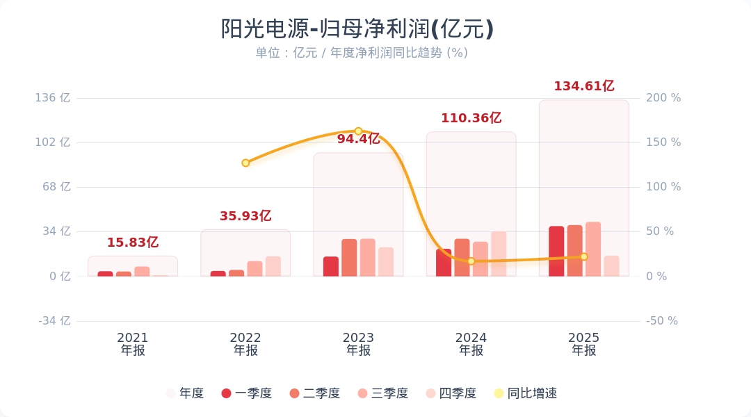 阳光电源:2025年度净利润135亿元同比增长22% 拟10派6.9元