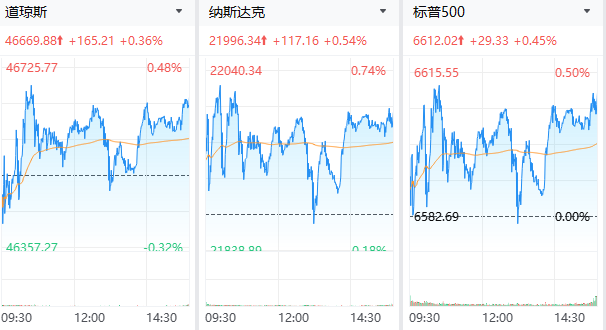 财联社4月7日电,美股三大指数集体收涨,纳指涨0.54%,标普500指数涨0.44%,道指涨0.36%。存储芯片板块走高,希捷科技涨超5%,西部数据、闪迪涨超3%。景顺股价收跌5.2%,创去年10月份以来最大单日跌幅。Blue Owl Capital收跌1.4%,创收盘历史新低。