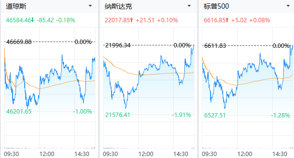 财联社4月8日电,美股三大指数收盘涨跌不一,纳指涨0.1%,标普500指数涨0.08%,道指跌0.18%。其中,纳指和标普500指数录得四连涨。科技股涨跌互现,博通涨超6%,英特尔涨超4%,西部数据、谷歌涨超2%,苹果跌超2%,特斯拉、甲骨文、高通跌超1%。
