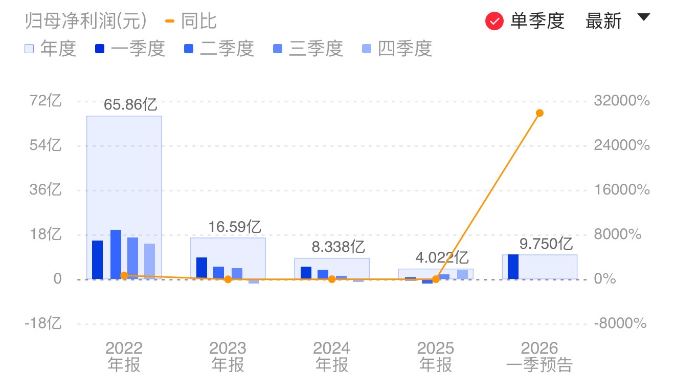 财联社4月8日电,天华新能(300390.SZ)公告称,预计2026年第一季度归属于上市公司股东的净利润为9亿元-10.5亿元,比上年同期增长27,517.53%-32,120.45%。报告期内受储能与动力电池下游需求增长推动,公司锂电材料业务利润大幅增长。公司预计2026年第一季度非经常性损益对归属于上市公司股东的净利润的影响金额约为2200万元。小财注:天华新能2025年Q4净利3.69亿元,据此计算,2026年Q1净利预计环比增长143.90%-184.55%。