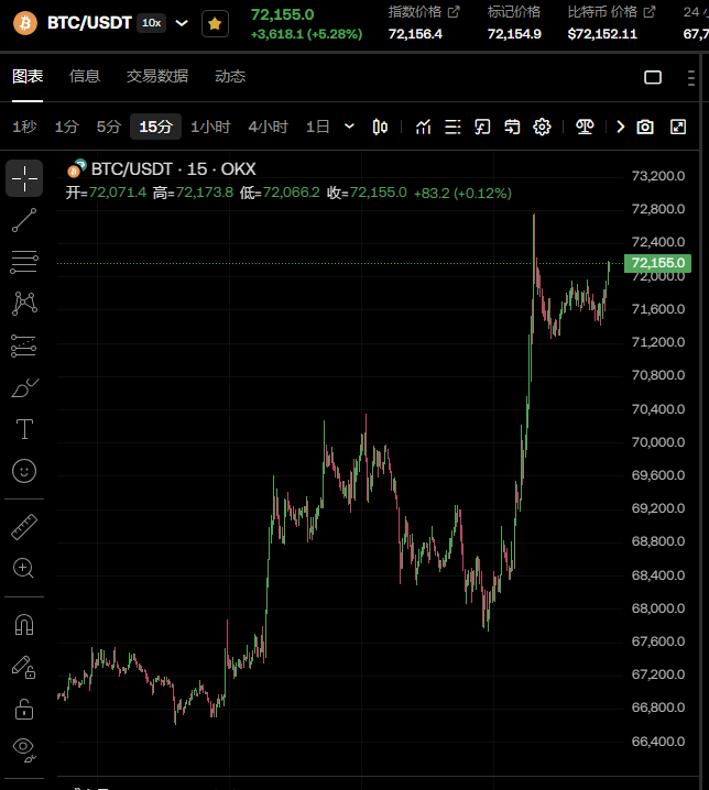 比特币升破7.2万美元 过去24小时内涨5.5%