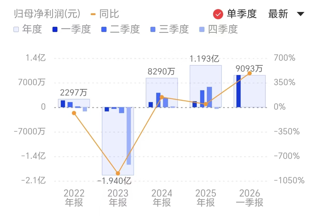 财联社4月20日电,昊志机电(300503.SZ)公告称,2026年第一季度实现营业收入4.96亿元,同比增长72.88%;归属于上市公司股东的净利润为9093.37万元,同比增长483.54%。业绩变动主要系受益于AI算力产业链基础设施以及消费电子行业市场需求旺盛所致。小财注:公司2026年Q1净利润9093.37万元,2025年Q4净利润-232.38万元,据此计算,Q1净利润环比扭亏。