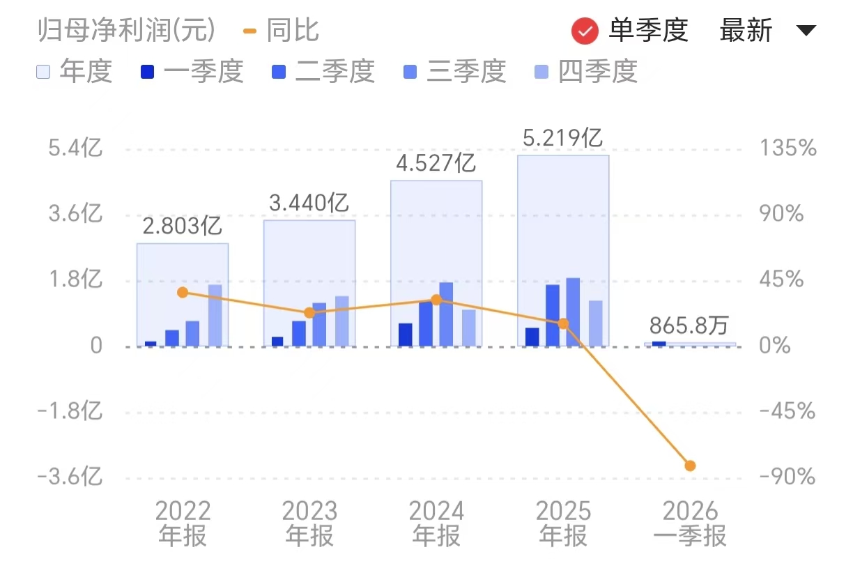 财联社4月20日电,英维克(002837.SZ)公告称,2026年第一季度实现营业收入11.75亿元,同比增长26.03%;归属于上市公司股东的净利润为865.76万元,同比下降81.97%。小财注:公司2026年Q1净利润865.76万元,2025年Q4净利润1.23亿元,据此计算,Q1净利润环比下降93%。