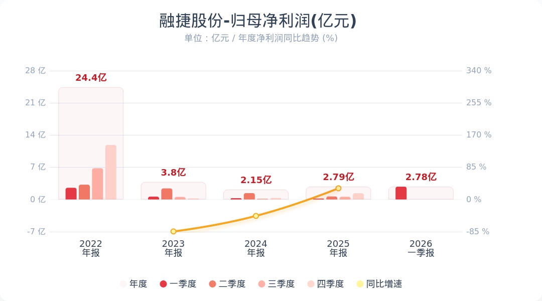 财联社4月27日电,融捷股份(002192.SZ)公告称,2026年第一季度实现营业收入3.76亿元,同比增长295.77%;归属于上市公司股东的净利润为2.78亿元,同比增长1296.26%。业绩变动主要系报告期内锂精矿产销量增加及价格上涨,导致锂矿采选业务利润增加;同时投资收益增加共同所致。小财注:公司Q1净利润2.78亿,2025年Q4净利润1.35亿,据此计算,Q1净利润环比增长106%。