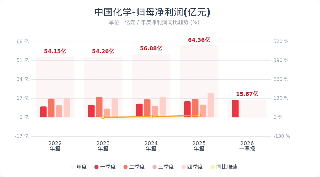财联社4月27日电,中国化学(601117.SH)公告称,2026年第一季度实现营业收入459.31亿元,同比增长3.22%;归属于上市公司股东的净利润为15.67亿元,同比增长8.46%。小财注:公司Q1净利润15.67亿,2025年Q4净利润22.04亿,据此计算,Q1净利润环比下降28%。