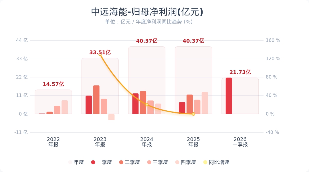 财联社4月27日电,中远海能(600026.SH)公告称,2026年第一季度实现营业收入73.03亿元,同比增长26.92%;归属于上市公司股东的净利润为21.73亿元,同比增长206.74%。业绩变动主要系本期外贸油运市场保持高位,公司对外把握市场机会、对内精益管理,使得整体效益上涨。小财注:公司Q1净利润21.73亿,2025年Q4净利润13.14亿,据此计算,Q1净利润环比增长65%。