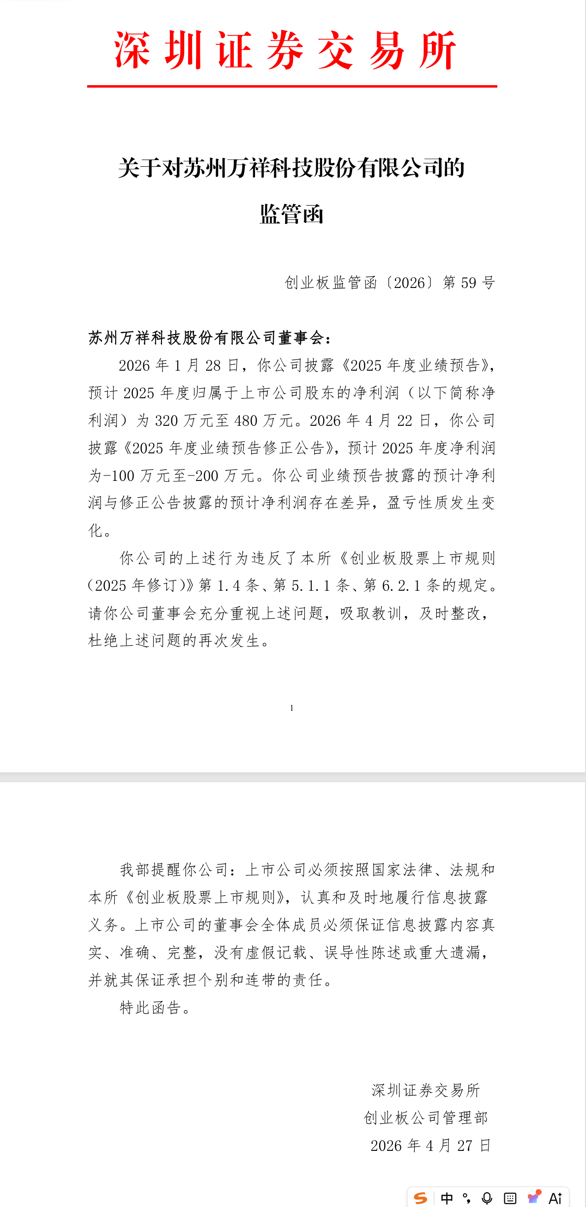 财联社4月27日电,万祥科技收到深交所监管函。