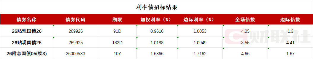 【新债招标|财政部三期国债已招标结束 10年期品种中标利率1.6866%】