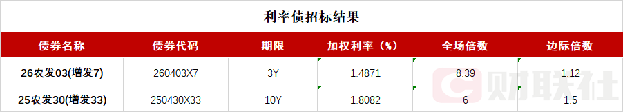 【农发行两期金融债已结束招标 10年期品种中标收益率1.8082%】