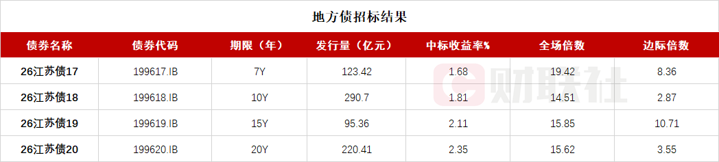 【江苏省政府四期地方债已招标结束 投标倍数均在14倍之上】