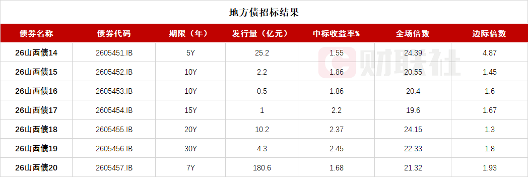 【山西省政府七期地方债已招标结束 投标倍数均在19倍之上】