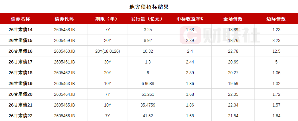 【甘肃省政府九期地方债已招标结束 投标倍数均在18倍之上】