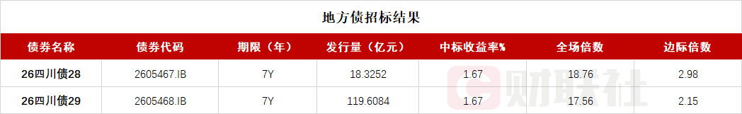 【四川省政府两期地方债已招标结束 投标倍数均在17倍之上】