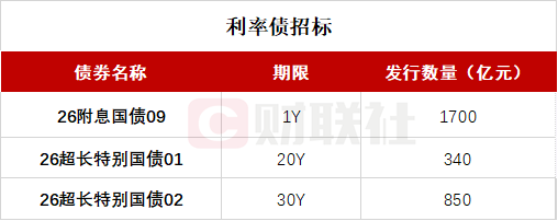 【财政部将于上午10:35-11:35招标发行一期附息国债和两期超长特别国债 期限1Y-30Y】